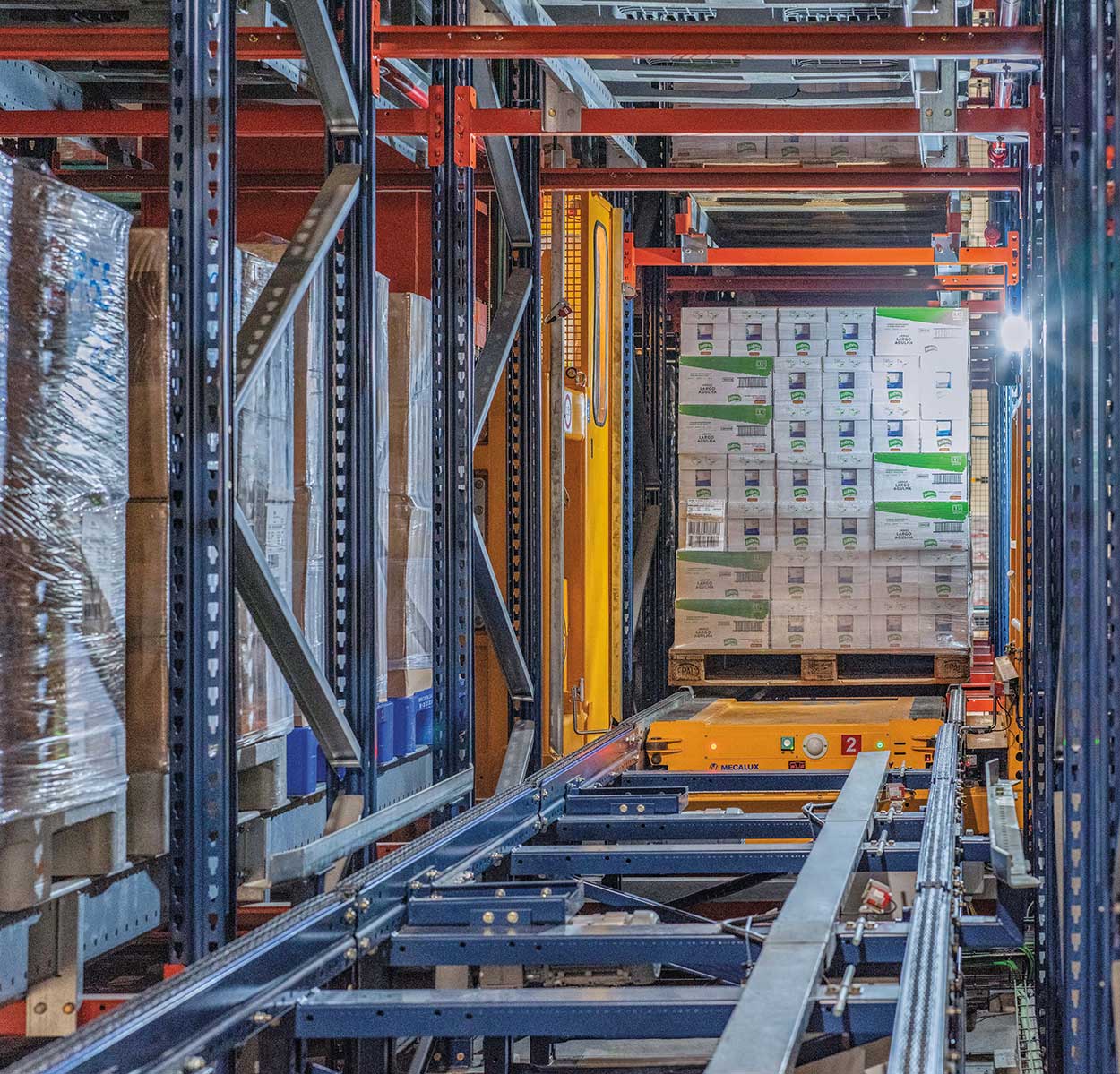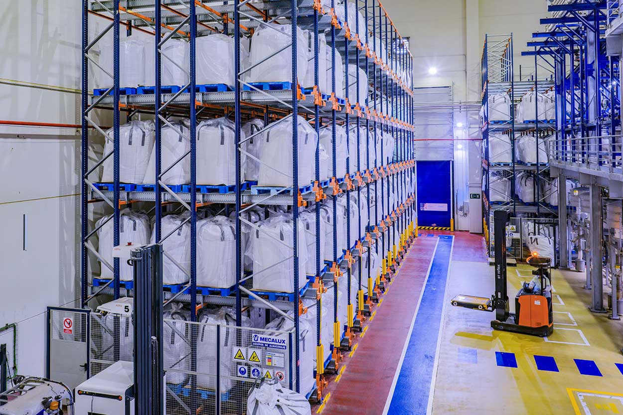 El depósito de Herba Ricemills también emplea racks equipados con el Pallet Shuttle semiautomático, ideal para trabajar con volúmenes muy elevados de pallets de una misma referencia.
