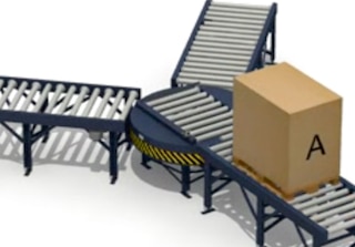 Transfiriendo pallets entre transportadores no alineados